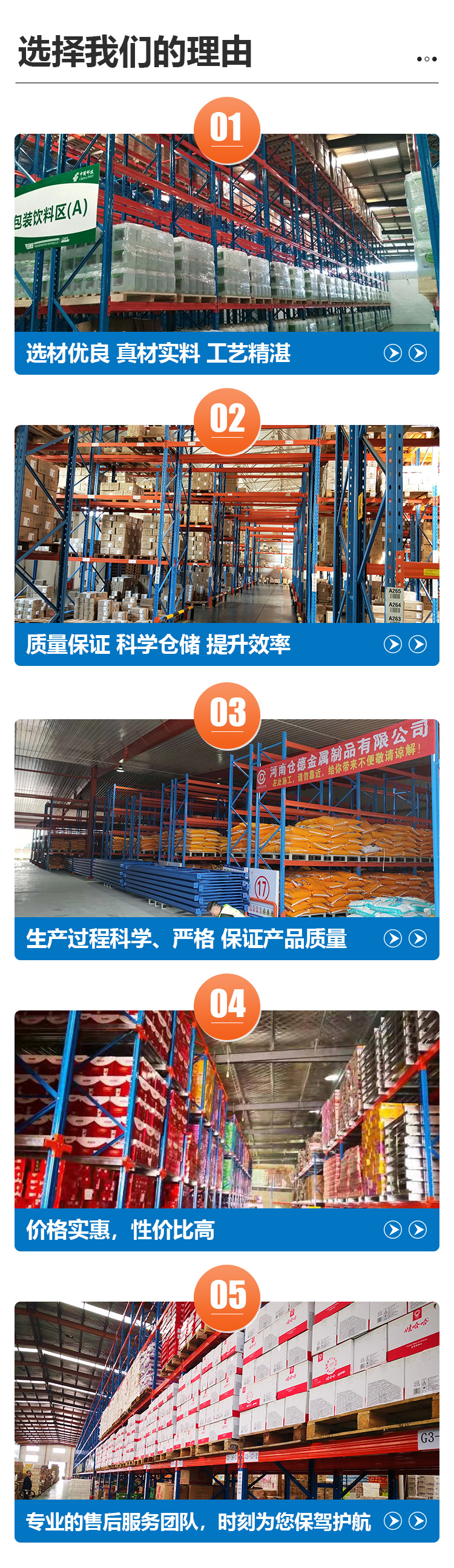 產(chǎn)品描述:廣泛適用于制造業(yè)、第三方物流和配送中心等領(lǐng)域,既適用于多品種小批量物品,又適用于少品種大批量物品。此外,為提高空間利用率,可將通道寬度縮小,配合特殊推高機(jī)循軌道行使,使儲(chǔ)存空間垂直化,即成為窄巷式料架。